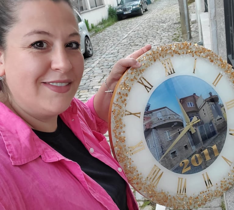 Jam Nertila, artizane që punoj me pasion dhe përkushtim në krijimin e orëve dhe veprave unike me resinë.